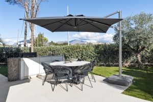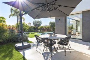 La villa consta de varias terrazas a cada lado de la propiedad. A un lado, una cocina exterior con parrilla y grifo de agua, y al otro, una terraza cubierta con una estupenda zona de estar.