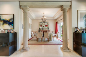 Bienvenido a esta excepcional villa de estilo clásico, situada en el corazón de la exclusiva zona de Rocio de Nagüeles, una de las más codiciadas de Marbella. Aquí disfrutarás de lo mejor de ambos mundos: tranquilidad y privacidad, sin renunciar a la cercanía del vibrante estilo de vida de la ciudad y todos sus servicios. Con su perfecta orientación sur, la casa se inunda de luz natural durante todo el día y está rodeada de un exuberante jardín que se integra armoniosamente con la naturaleza. Desde la planta superior, también podrás disfrutar de unas impresionantes vistas al mar y a la montaña.