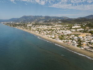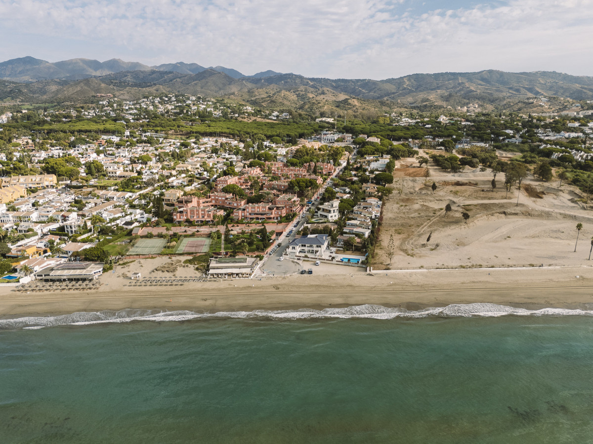 Ubicada en segunda línea de playa, a tan solo 30 metros de la orilla del mar. Esta villa se encuentra a pocos minutos de reconocidos chiringuitos, restaurantes, campos de golf y servicios, con excelente conexión a la A-7 y a solo 10 minutos del centro de Marbella.