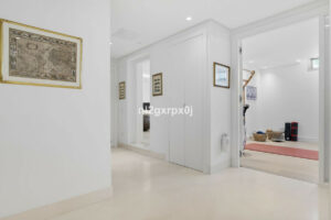 Los interiores están diseñados con suelos de parqué de roble y piedra natural, mientras que la cocina abierta incluye una isla de acero inoxidable y electrodomésticos de alta gama de Miele, Neff y Siemens.