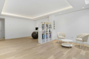En el semi-sótano se encuentran el tercer dormitorio con baño completo, con posibilidad de construir un quinto dormitorio con baño en suite en esta planta. una sala de gym y sala de maquinas completan eta planta.