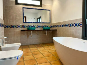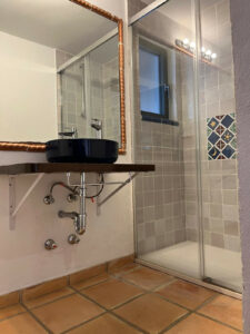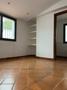 La planta superior alberga el dormitorio principal con baño en suite y salida directa a una terraza descubierta, privada y soleada, ideal como espacio de descanso o zona chill out.