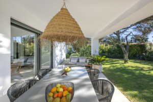 La villa está diseñada para aprovechar al máximo el clima mediterráneo. Su cuidado jardín privado y su encantadora terraza proporcionan el entorno perfecto para disfrutar de momentos de tranquilidad en buena compañía. La orientación sur garantiza abundante luz natural durante todo el día y ofrece espectaculares vistas de la puesta de sol. Para garantizar el mantenimiento del jardín sin esfuerzo, la propiedad está equipada con un sistema de riego automático. Además, la villa cuenta con paneles solares, lo que reduce significativamente los costes energéticos y promueve la sostenibilidad. Un amplio garaje con espacio para dos vehículos completa el exterior, ofreciendo practicidad y comodidad.