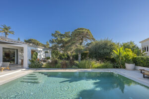 Impresionante villa de una sola planta situada en la tranquila y solicitada zona de Marbesa, al este de Marbella. Esta propiedad bellamente diseñada cuenta con tres dormitorios más un espacio de oficina, por lo que es ideal tanto para la relajación como para la productividad. La villa se sometió a una reforma completa en 2010, meticulosamente llevada a cabo por un arquitecto muy conocido en el región y internacional. Su visión fusionó con éxito la arquitectura clásica española con la sofisticación contemporánea, dando como resultado una casa que es a la vez elegante y funcional. A lo largo de la renovación se seleccionaron cuidadosamente materiales duraderos y de alta calidad, que garantizan la longevidad y un acabado impecable. El mobiliario hecho a medida realza aún más la elegancia de la villa. La propiedad se vende completamente amueblada (excluyendo efectos personales y obras de arte), con los muebles disponibles por un coste adicional de 40.000 €.