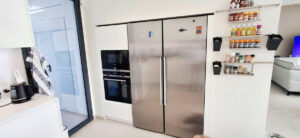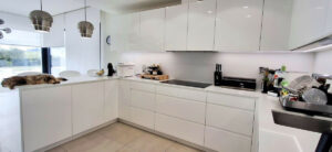 La cocina moderna y funcional cuenta con acabados de alta calidad y electrodomésticos de última generación. En la parte trasera de la cocina, encontrará un práctico lavadero. Uno de los aspectos más destacados de esta villa es la cocina exterior, completamente equipada con barbacoa, parrilla y áreas de cocina y refrigeración, perfecta para preparar y disfrutar de comidas al aire libre durante las suaves noches mediterráneas.