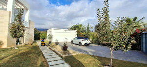 La villa ha sido mejorada con varias instalaciones exteriores, que incluyen un garaje privado para dos coches y espacio adicional de almacenamiento. Además, está equipada con paneles solares discretos que generan 55 kWh de energía por día, lo que permite un ahorro significativo en los costos de energía.