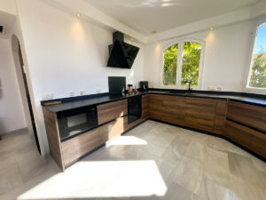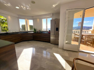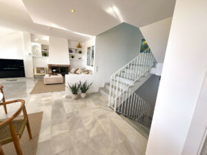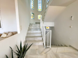 Planta Principal: Un luminoso vestíbulo le da la bienvenida y le conduce directamente al corazón de la villa: un impresionante espacio abierto donde la cocina artesanal hecha a medida, el comedor y el salón fluyen en total armonía. Esta planta también cuenta con un práctico aseo de cortesía. Los suelos, recién pulidos, reflejan la luz natural creando un ambiente de lujo y continuidad en toda la planta.