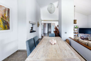 Al entrar en la propiedad, encontrará una amplia entrada con amplio espacio de almacenamiento. Al desplazarse hacia la derecha, se accede al salón-comedor de planta abierta, con techo abovedado y acceso a la terraza-comedor, y además, a la cocina independiente y al lavadero.