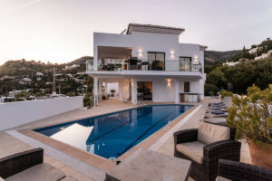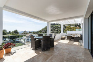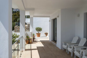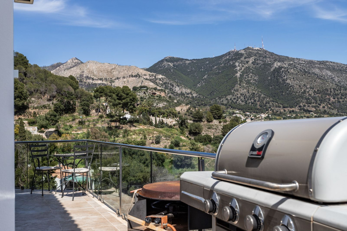 Desde la planta superior, disfrutarás de la mejor vista de Mijas: un extenso panorama que abarca tanto el mar Mediterráneo como el paisaje montañoso circundante. Aquí podrás disfrutar tanto del sol de la mañana como del de la tarde, desde alguna de las muchas terrazas o el patio exterior junto a la piscina privada.