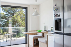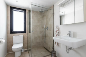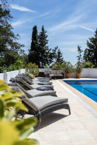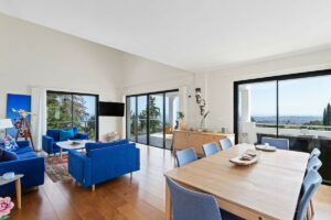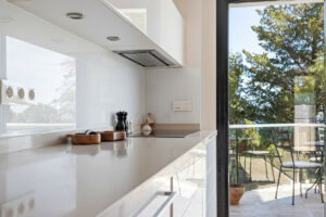 La villa cuenta con tres amplios dormitorios, tres baños de diseño elegante y un aseo para invitados. Grandes paneles de vidrio y generosas ventanas llenan la casa de luz natural, creando una atmósfera luminosa y aireada donde los espacios interiores y exteriores se fusionan de manera armónica.