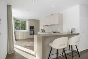 Este espacio está cuidadosamente diseñado para integrarse a la perfección con la amplia terraza exterior y la piscina, creando un flujo natural entre la comodidad interior y la vida al aire libre.