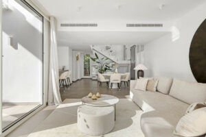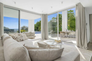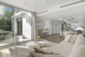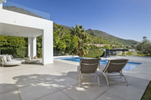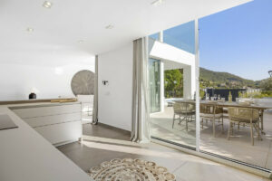 Este espacio está cuidadosamente diseñado para integrarse a la perfección con la amplia terraza exterior y la piscina, creando un flujo natural entre la comodidad interior y la vida al aire libre.