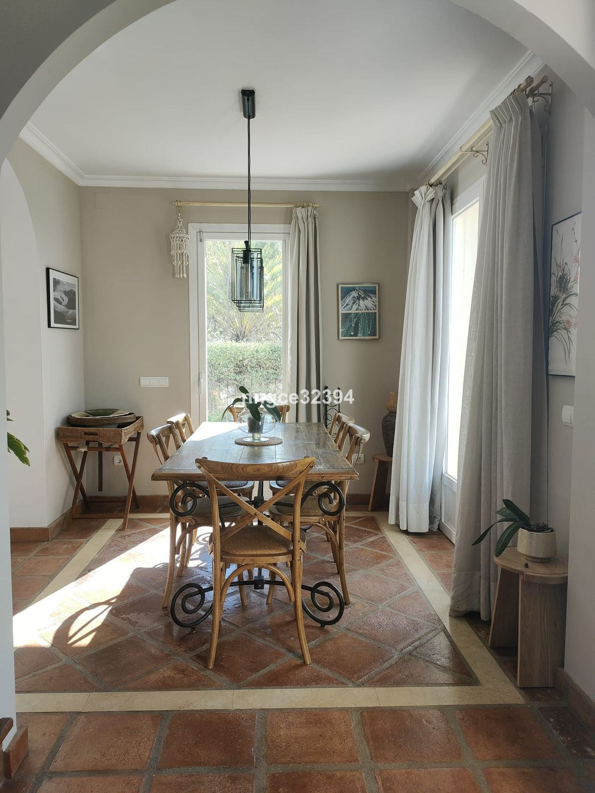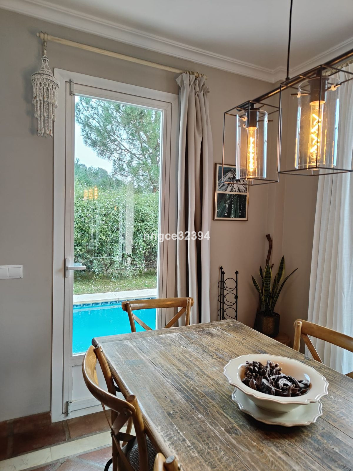 Al entrar en esta villa dentro de una comunidad cerrada y con seguridad, encontrará un plano de distribución abierto y único, con cálidos suelos de barro con incrustaciones de mármol. Un salón bañado por la luz natural, con tres puertas francesas, se abre directamente a las terrazas, jardines y a su piscina privada. El espacioso garaje cubierto ofrece lugar para varios coches, un barco o incluso una caravana, una característica poco común en la zona.