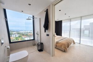 Las plantas superiores albergan las suites de los dormitorios, cada uno con su propio baño en suite. El dormitorio principal es un auténtico refugio de lujo, con un elegante baño que incluye ducha efecto lluvia, bañera exenta y un amplio vestidor. Toda la vivienda dispone de suelo radiante y aire acondicionado, garantizando el máximo confort durante todo el año.