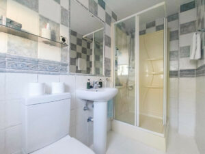 En la planta superior hay 3 lujosos dormitorios, cada uno con su propio cuarto de baño. El cuarto de baño del dormitorio principal de la planta superior solía ser un dormitorio, que se convirtió en un gran cuarto de baño.