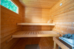 Auténtica sauna finlandesa para una relajación total después de un día en el campo de golf o en la playa.