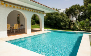 El exuberante y privado jardín es un verdadero oasis verde, ideal para disfrutar del estilo de vida al aire libre, recibir invitados o relajarse bajo el clima privilegiado de la Costa del Sol.