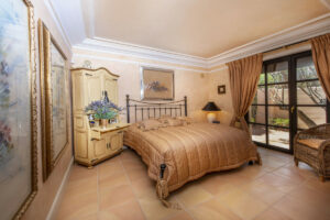 Asciende al piso superior, donde la suite principal palaciega reina suprema. Este santuario de descanso cuenta con un baño opulento, un vestidor espacioso y una terraza privada que domina vistas inolvidables del Mediterráneo.
