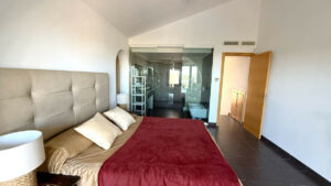 Suba a la planta superior, donde encontrará un sofisticado tercer dormitorio con baño en suite, que ofrece un espacio tranquilo y privado. Esta planta también ofrece acceso a un espectacular solárium en la azotea, donde podrá disfrutar de impresionantes vistas panorámicas y de un espacio exterior adicional para relajarse, tomar el sol o entretenerse al aire libre.