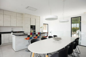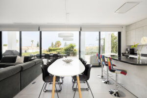 Esta exclusiva villa de lujo, combina arquitectura moderna con la más alta calidad de construcción y una distribución cuidadosamente diseñada. La vivienda está inundada de luz gracias a los grandes ventanales en todas las estancias, lo que crea una armoniosa sensación de amplitud y elegancia. La villa está equipada con la última tecnología de domótica, que permite controlar fácilmente la temperatura y las diferentes funciones a través de una unidad central o aplicación móvil. La calefacción por suelo radiante en toda la casa y los paneles solares garantizan confort durante todo el año y un estilo de vida energéticamente eficiente.
