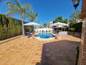 A la venta en una de las urbanizaciones más cotizadas de Alhaurin de la Torre con acceso a pie a las tiendas, colegios, parada de autobús. Sobre una parcela vallada de 1000 metros la villa consta en planta baja de un salón con chimenea, un comedor en doble ambiente, una cocina muy amplia completamente equipada de alto nivel con su comedor y un aseo; en la primera planta hay tres dormitorios dobles con armarios empotrados y dos baños , la suite tiene su propio baño con vestidor, una planta sótano completamente habilitada, con salón,sala de juego, barra, dormitorio, baño, sauna, trastero y lavadero, en la parcela hay una gran piscina, zona barbacoa de obra con cocina de verano, 1 baño con ducha, varias plazas de coche en la parcela, portón automático, aire acondicionado en toda la casa, ventanas de climalit, persianas. Villa de alto nivel en perfecto estado para entra a vivar de inmediato.