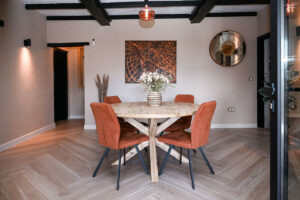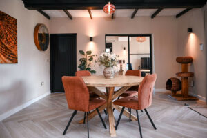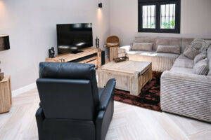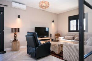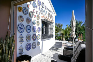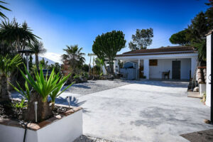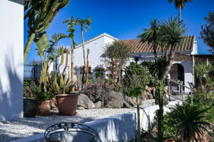 La casa principal ha sido diseñada cuidadosamente para crear espacios de vida luminosos y abiertos que fluyen de manera natural entre el interior y el exterior. La cocina americana y el comedor forman el corazón del hogar, complementados por un amplio salón que también puede servir como dormitorio adicional si es necesario. Dos generosos dormitorios y dos baños completamente renovados ofrecen confort y lujo, con suelo radiante, inodoros suspendidos y grifería Hansgrohe de primera calidad. Amplios porches cubiertos extienden la zona de estar al exterior, creando el entorno perfecto para relajarse, entretenerse o simplemente disfrutar del entorno tranquilo.