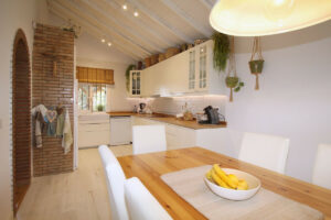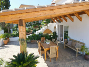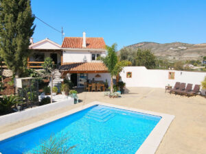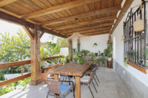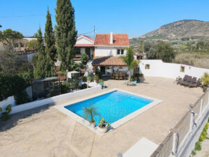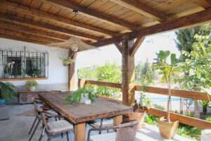 Esta propiedad cuenta con una casa de dos plantas con 187 m2 útiles construida en 1969 y completamente reformada en 2022. Las instalaciones para el suministro eléctrico, agua y la chimenea del salón son nuevas. La entrada se da en la primera planta, a través de una terraza superior cubierta con vistas al jardín, la piscina y al entorno natural que rodea la propiedad. Desde esta accedemos a un vestíbulo, cocina con comedor integrado, un amplio salón, tres dormitorios y un espacioso baño. Desde la terraza superior bajamos a otra terraza cubierta a desnivel, y desde aqui entramos a un anexo independiente con salón, cocina, 1 amplio dormitorio con armario empotrado y un baño.