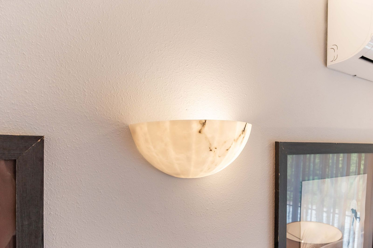 La vivienda principal, en una sola planta y con 140 m² construidos, dispone de un luminoso salón-comedor, cocina abierta amueblada, tres dormitorios y dos baños (uno en suite). Para garantizar el confort durante todo el año, la casa está equipada con aire acondicionado frío/calor, suelo radiante y ventanas de doble acristalamiento.