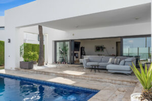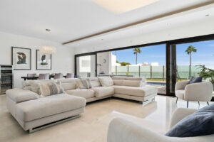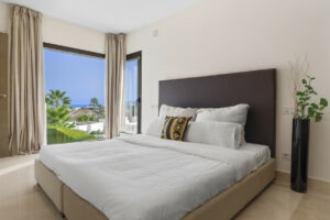 El interior viene totalmente amueblado, mostrando una cocina elegante y totalmente equipada, un luminoso comedor y una acogedora sala de estar. Las puertas de vidrio de suelo a techo inundan la casa con luz natural mientras que enmarcan vistas panorámicas del mar, montañas, campo de golf y vegetación circundante. Desde la terraza de la azotea, disfrute de vistas sin obstáculos que se extienden a través de la costa, un escenario espectacular para disfrutar de cócteles o atardeceres.