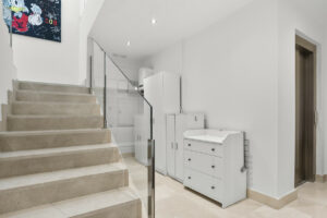 Los espacios privados al aire libre de la villa son igualmente impresionantes, con una piscina prístina, jardín ajardinado y terrazas cubiertas y descubiertas para disfrutar todo el año. Los lujos prácticos como armarios empotrados, ascensor y garaje privado garantizan un estilo de vida de comodidad y sofisticación.