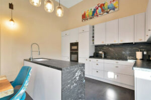 En la planta superior, la suite principal ocupa toda la planta y ofrece un dormitorio con techo abovedado, una terraza panorámica con impresionantes vistas al mar y a la montaña, un lujoso baño con bañera de hidromasaje y ducha a ras de suelo flotante.