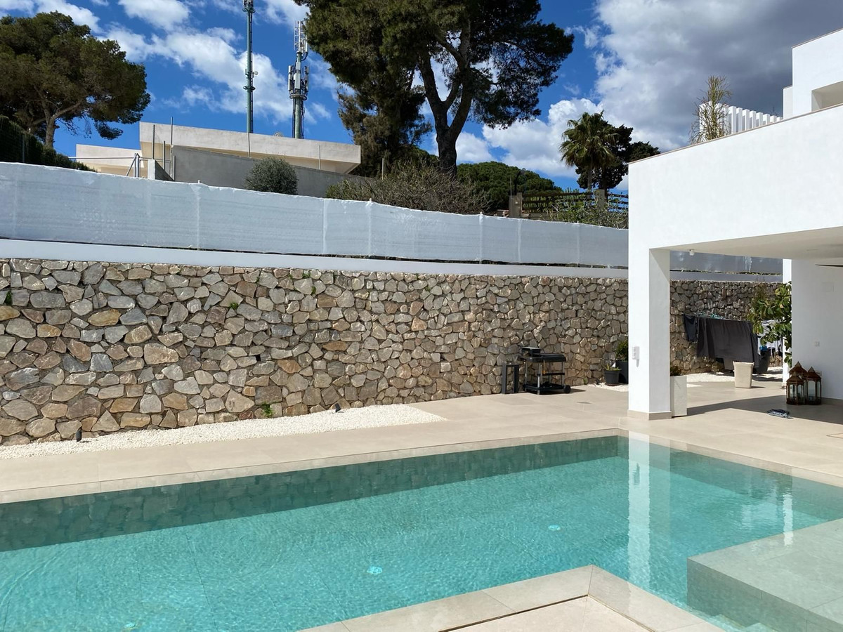 La parcela tiene 1.374 m2, totalmente vallada con muros y vallas e iluminación perimetral. La casa tiene 330 m2, distribuida en cuatros dormitorios (tres de ellos en suite), cinco cuartos de baños, salón cocina en concepto abierto, despensa y un gran distribuidor. Todo esto discurre en una única planta, salvo la habitación principal (unos 60 m2) que está en una segunda. Esta habitación dispone de un gran vestidor, bañera hidroplus, una gran encimera con dos lavabos, donde se encuentra a derecha e izquierda dos grandes cabinas ( ducha doble más c y bidé).