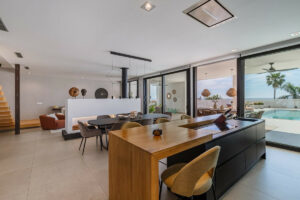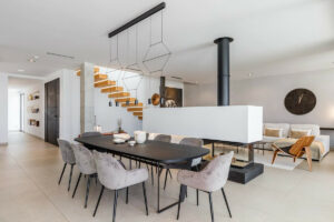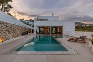 Instalaciones más importantes: agua sanitaria solar, aerotermia para suelo radiante y fan coil con termostatos independientes en todas las dependencias, doble placa de pladur con aislamiento acústico en todo el interior, alarma, chimenea, cristales de seguridad, piscina infíniti con clorarnos salino, porche cubierto de 4×14 metros, sala de maquinas independiente, y zona de aparcamiento para más de diez vehículos en el interior de la finca.