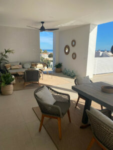 La orientación es magnífica, sur y las vistas espectaculares, a un minuto andando a la playa..