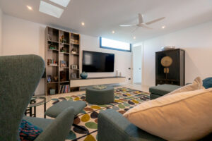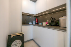 Cinco niveles de arquitectura de vanguardia. Desde el garaje para dos coches con prevision de ascensor, hasta la planta de entretenimiento con estación de catering y dos dormitorios de invitados con baño, hasta la planta baja con cocina abierta, comedor y sala de estar, incluido un tercer dormitorio de invitados con baño de invitados, hasta el primer piso. alberga la suite principal con vestidor, tocador doble, ducha e inodoro, incluida la oficina privada que posiblemente ofrece una de las mejores vistas de la ciudad y el gran solárium en la parte superior. Todos los pisos se sienten muy luminosos y todas las habitaciones son muy luminosas y están abiertas a sus balcones o terrazas exclusivos. Calefacción por suelo radiante en toda la casa. El salón cuenta con cortinas eléctricas.