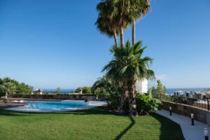 En el exterior, piscina privada con espectaculares vistas a la bahía de Fuengirola, gran terraza con jardín utilizable todo el año, zona chill-out, zona de barbacoa, equipada con aseo exterior.