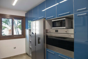 – en la planta baja hay otro gran salón con gimnasio, 1 dormitorio y baño + trastero. También hay una preinstalación para una cocina adicional si fuera necesario.