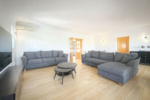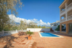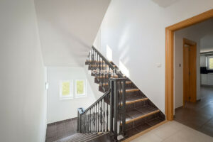 Desde el hall de entrada se puede acceder al amplio salón a través de puertas dobles, o salir a la gran terraza que conecta tanto con el salón como con la cocina. Desde la terraza se puede disfrutar de una increíble vista panorámica de la naturaleza circundante.