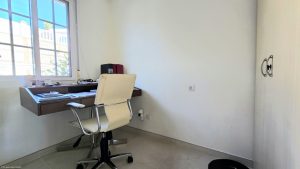 Ingrese en el primer nivel a un patio de azulejos de fácil mantenimiento con limoneros y plantas tropicales, con una zona de estar. En el extremo derecho hay una segunda entrada desde el puerto abierto de automóviles al lado de la villa.