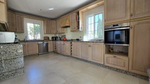 Ingrese a la propiedad en un gran rellano brillante. A la izquierda hay una oficina, fácilmente convertida en un dormitorio 5. Este nivel también cuenta con un WC para dar servicio al primer piso. En la esquina derecha hay una gran cocina con electrodomésticos muy modernos y nevera americana, fregadero de granito y tapas de trabajo. La cocina también tiene acceso a la planta baja y conduce a la gran terraza cubierta con cortinas de cortina acristaladas, utilizando la zona para todas las estaciones. increíbles vistas de 280 grados, decoradas con buen gusto y amuebladas con un alto nivel con un comedor de 8 asientos con asientos de róbalo para relajarse y disfrutar de la vista. Esta área también cuenta con una barbacoa doble interior Broil King con extractor de horno de chimenea eléctrica.