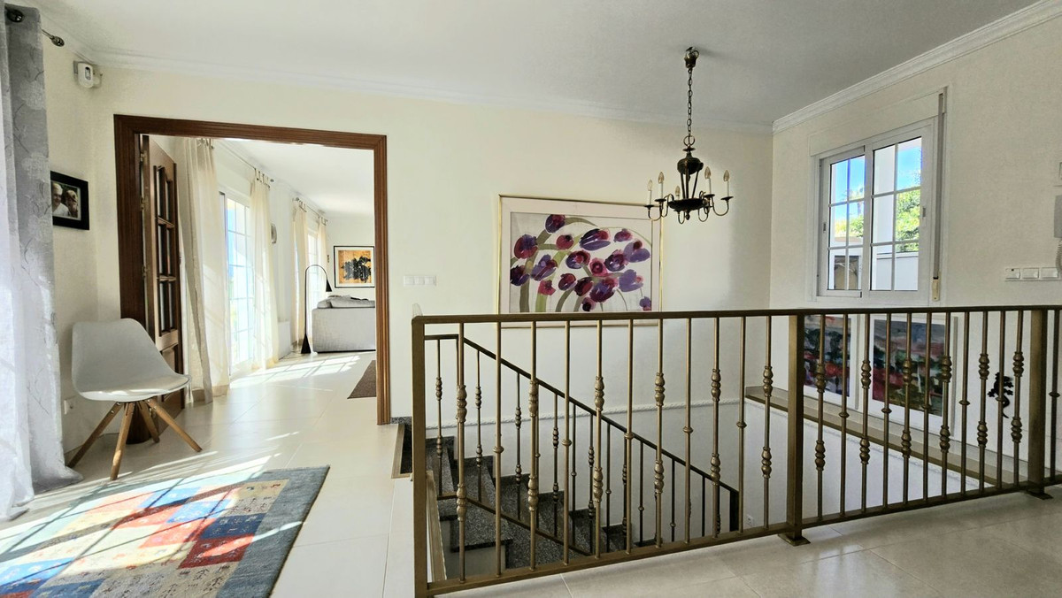 Ingrese a la propiedad en un gran rellano brillante. A la izquierda hay una oficina, fácilmente convertida en un dormitorio 5. Este nivel también cuenta con un WC para dar servicio al primer piso. En la esquina derecha hay una gran cocina con electrodomésticos muy modernos y nevera americana, fregadero de granito y tapas de trabajo. La cocina también tiene acceso a la planta baja y conduce a la gran terraza cubierta con cortinas de cortina acristaladas, utilizando la zona para todas las estaciones. increíbles vistas de 280 grados, decoradas con buen gusto y amuebladas con un alto nivel con un comedor de 8 asientos con asientos de róbalo para relajarse y disfrutar de la vista. Esta área también cuenta con una barbacoa doble interior Broil King con extractor de horno de chimenea eléctrica.