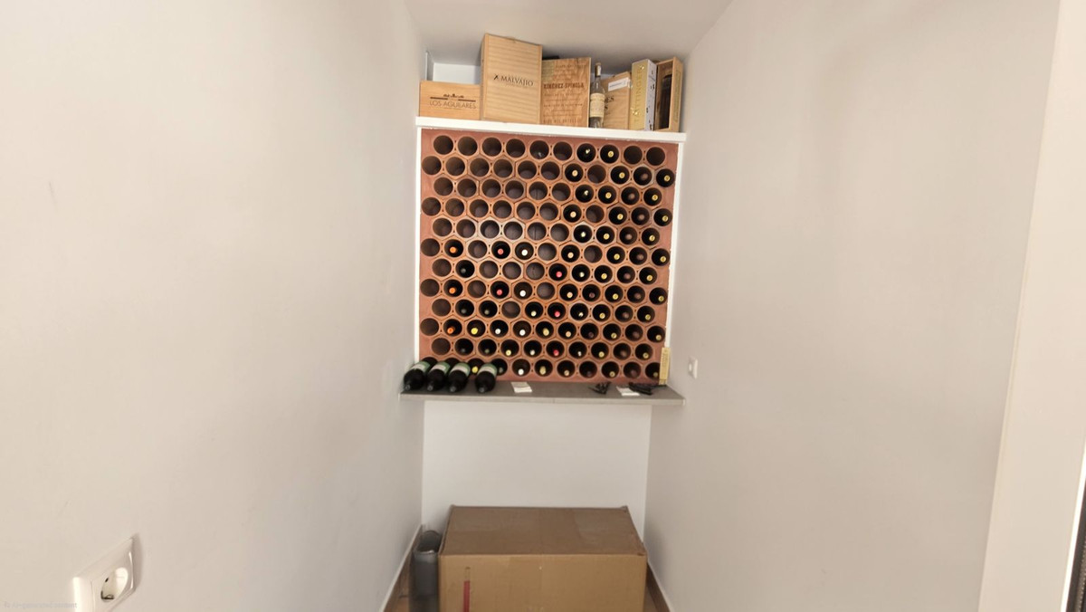 Baja el corto tramo de escaleras. A la izquierda hay una sala de servicios muy grande con fregadero, lavadora, armarios de cocina equipados, también hay almacenamiento y un pequeño pantree.
