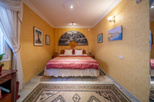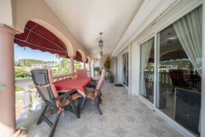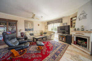 La villa se encuentra en excelente estado, con materiales de primera calidad: suelos de mármol, aire acondicionado, doble acristalamiento, armarios empotrados, sistema de alarma y puerta de seguridad. Además, incluye paneles solares fotovoltaicos, internet de alta velocidad y posibilidad de mobiliario.