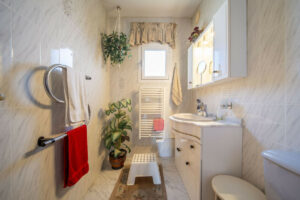 Planta superior con dormitorio principal en suite y terraza privada, además de aseo de invitados.