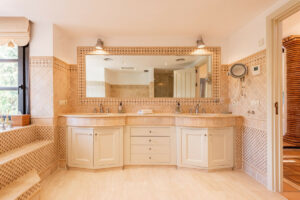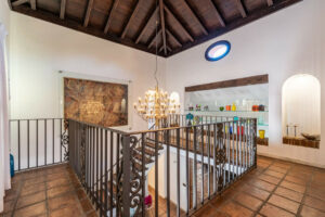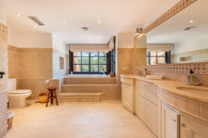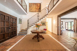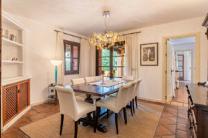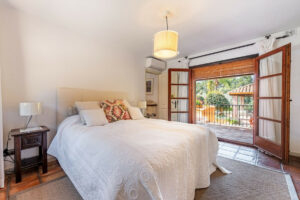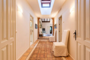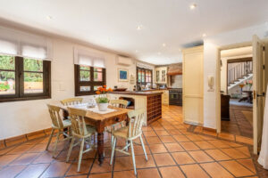 La casa cuenta con espacios luminosos, una cocina moderna, varios dormitorios con baño y detalles tradicionales como suelos de terracota.