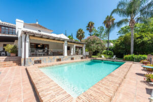 Esta villa de estilo andaluz en El Paraíso Medio ofrece privacidad, impresionantes vistas y proximidad a campos de golf y servicios.