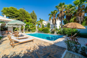 Dos dormitorios en suites adicionales en la primera planta tienen vistas a la piscina y al exuberante entorno verde. La villa es muy luminosa y privada. Un solárium de fácil acceso es una ventaja para los amantes del sol.