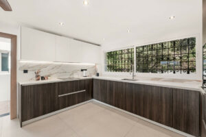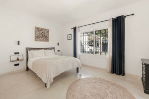 Además, disponemos de un espacioso dormitorio de invitados con vistas al jardín delantero y un baño en suite totalmente reformado. Finalmente, el dormitorio principal al fondo, con acceso al jardín trasero y un lujoso y espacioso baño en suite completamente reformado.