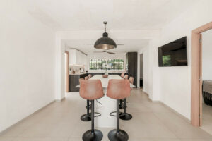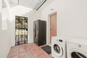 También hay una escalera que da acceso a un nivel inferior con una habitación ideal para una bodega, bar o gimnasio.