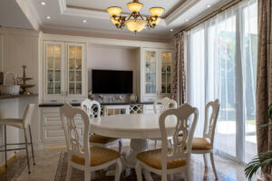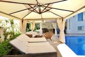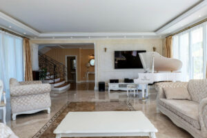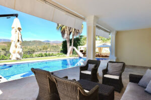La villa cuenta con 4 dormitorios y 4 baños, un amplio y luminoso salón y una moderna cocina totalmente equipada. Amplios ventanales inundan los interiores de luz natural, creando un ambiente fresco y acogedor.